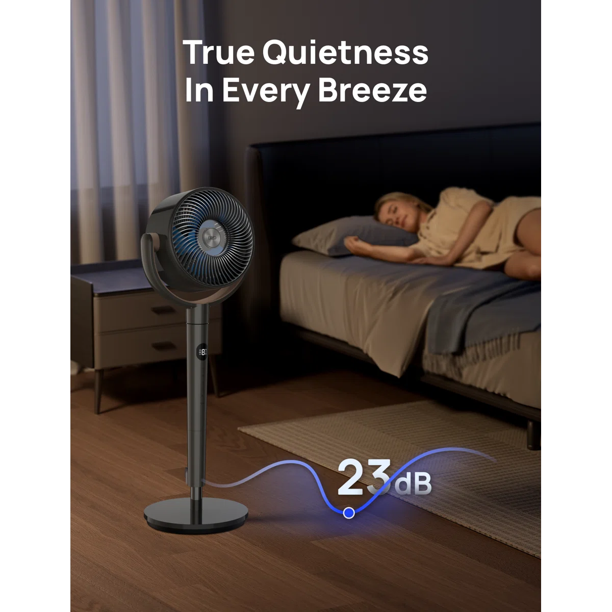 - Quiet and Efficient: The DC motor and bionic blade design increase airflow by 30% and save 40% energy. Running as quiet as 23dB, perfect for peaceful sleep or work.